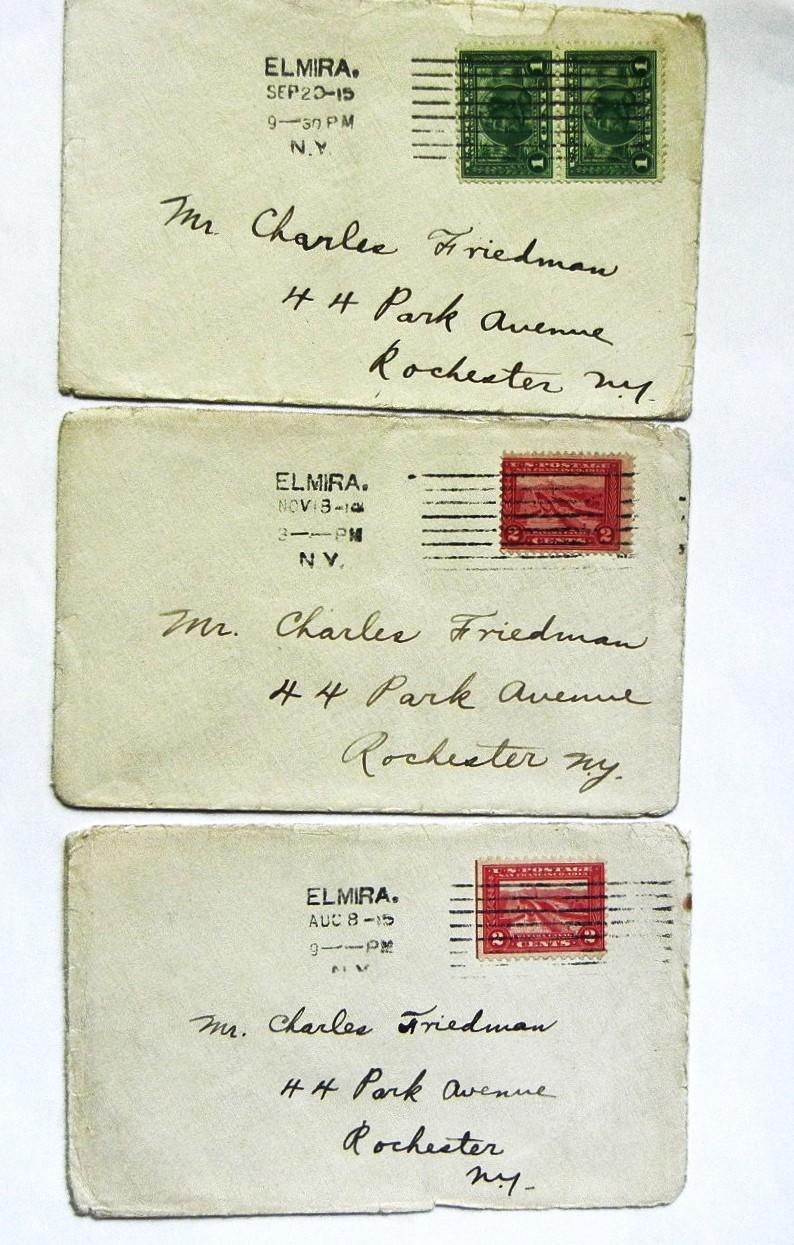 NEW YORK: ELMIRA 3 1915 COLUMBIA POSTMARK COVERS W. PAN-AM COMMEMORATIVE STAMPS Three excellent covers with full Columbia postmarks and desirable Pan-Am Expo commemorative stamps. |