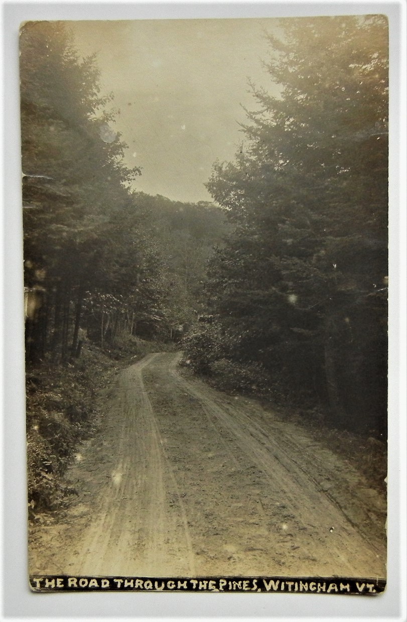 withingham-vermont-unused-real-picture-postcard-of-road-through-the-pines VERMONT:WITHINGHAM UNUSED REAL PICTURE POSTCARD OF ROAD THROUGH THE P